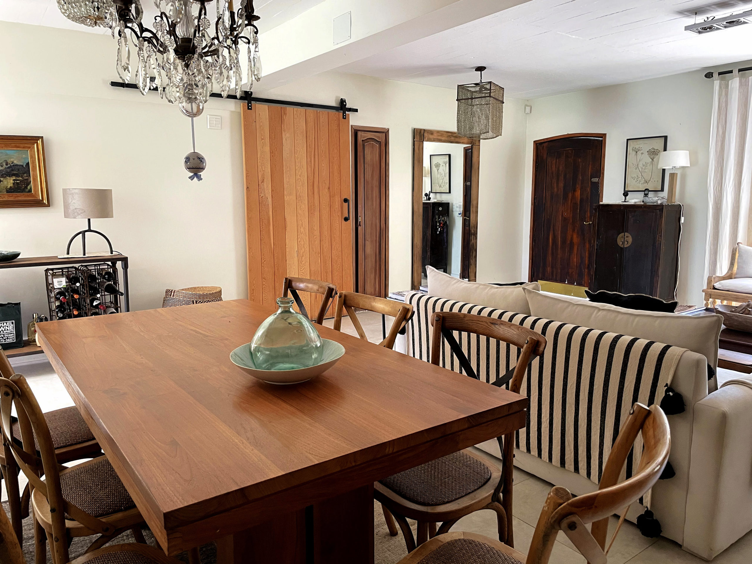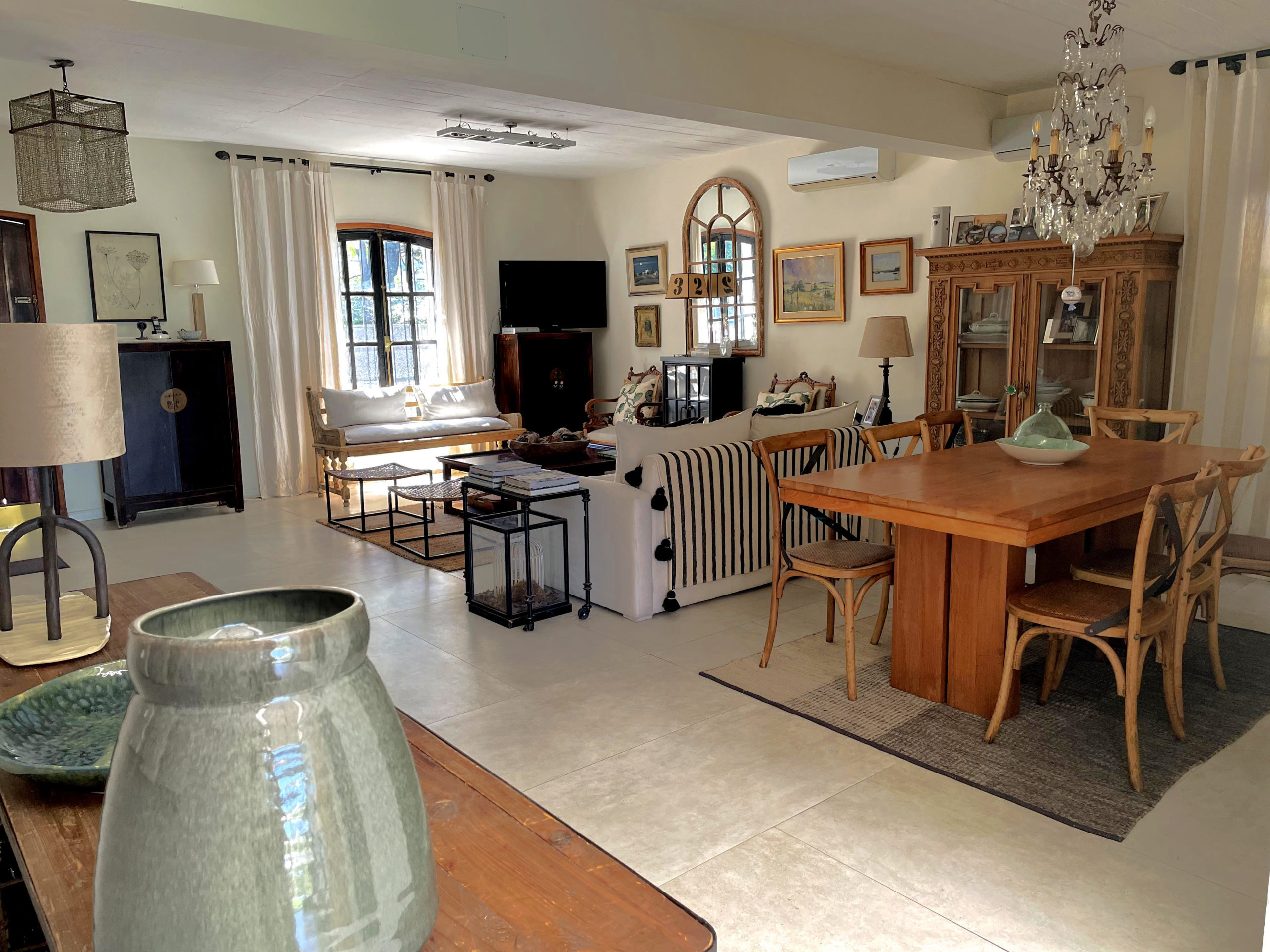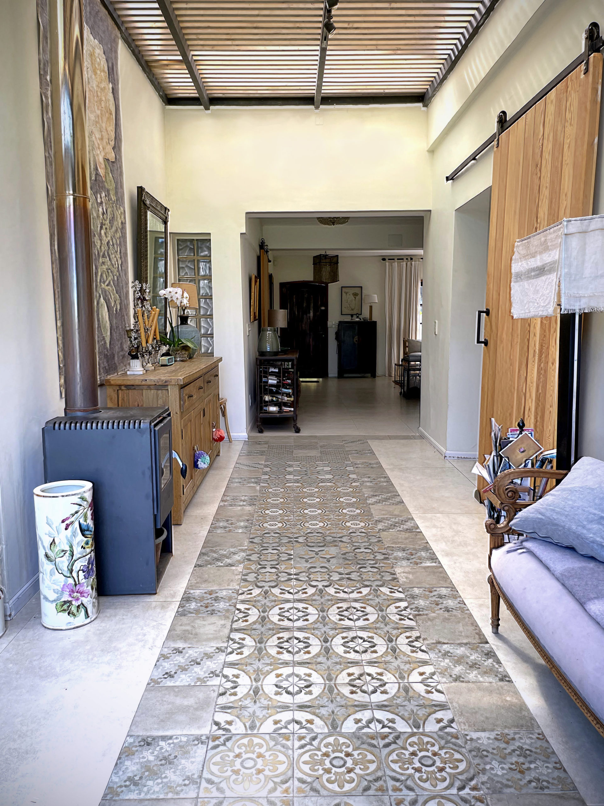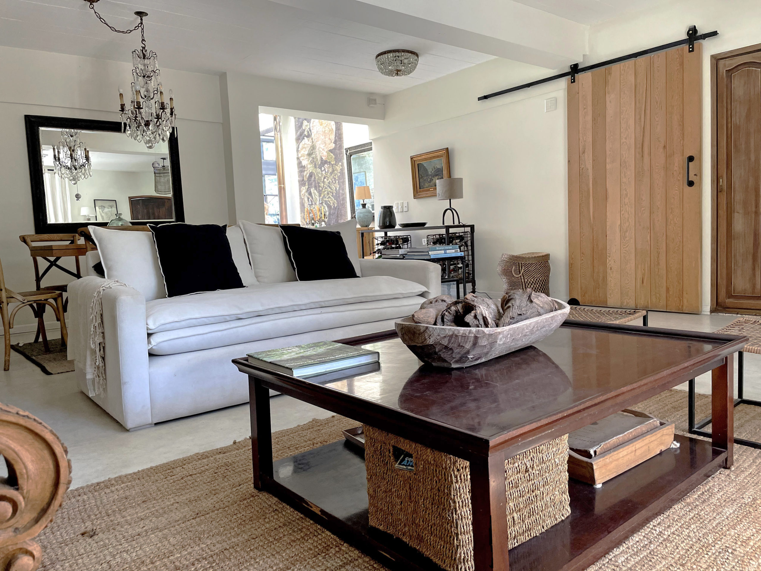 Con el fin de revitalizar el uso de la zona social de la casa, se buscó generar mayor espacio en el living comedor. Para ello, se decidió eliminar la estufa que separaba ambos ambientes. Se amplió la vivienda, generando un patio interior el cual se encuentra anexo al living comedor. Para el techo del patio, se optó por una estructura liviana conformado por una estructura de hierro, madera y policarbonato, para incorporar una luz cenital e iluminar el living comedor existente, ya que este espacio solía recibir poca luz.